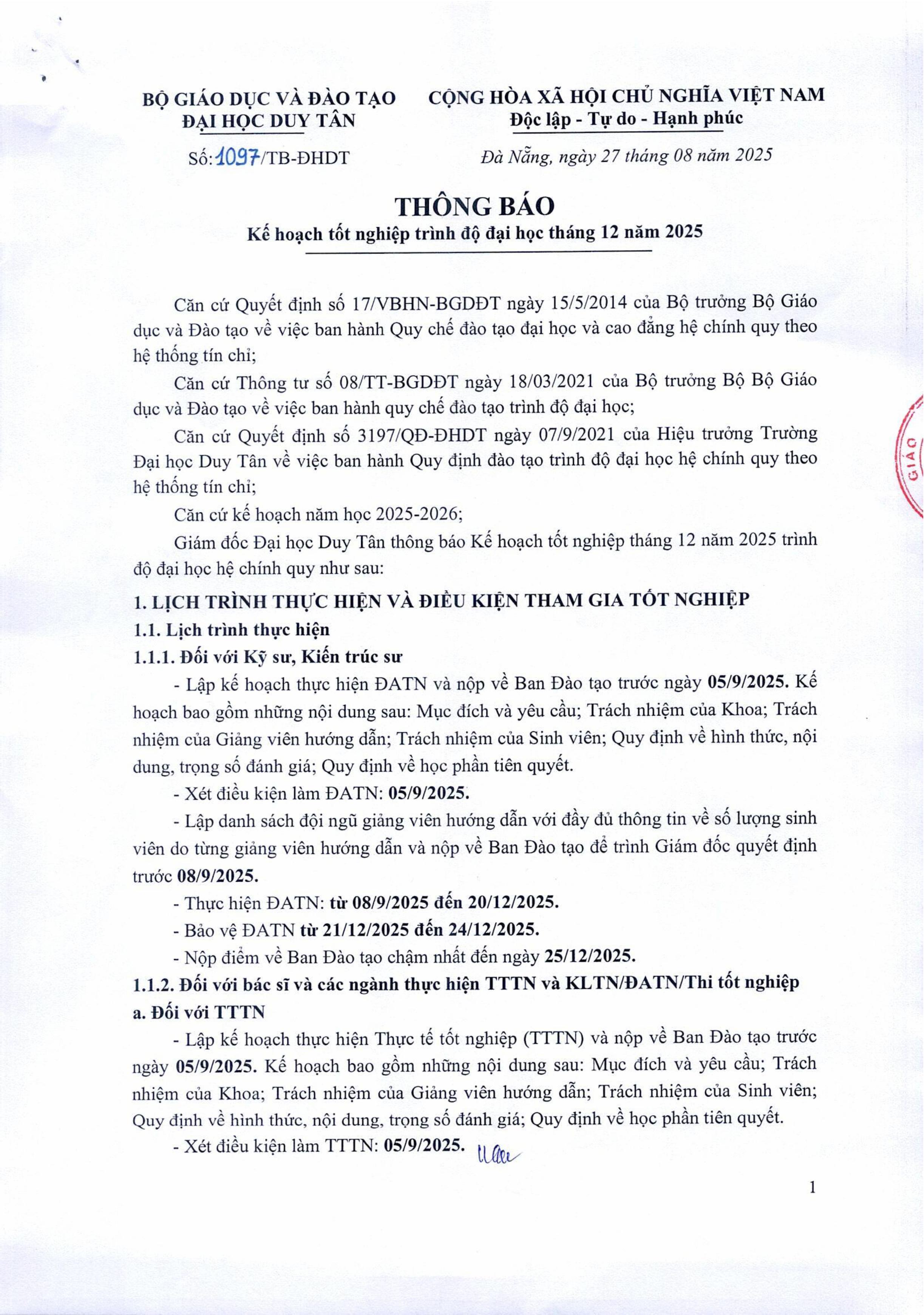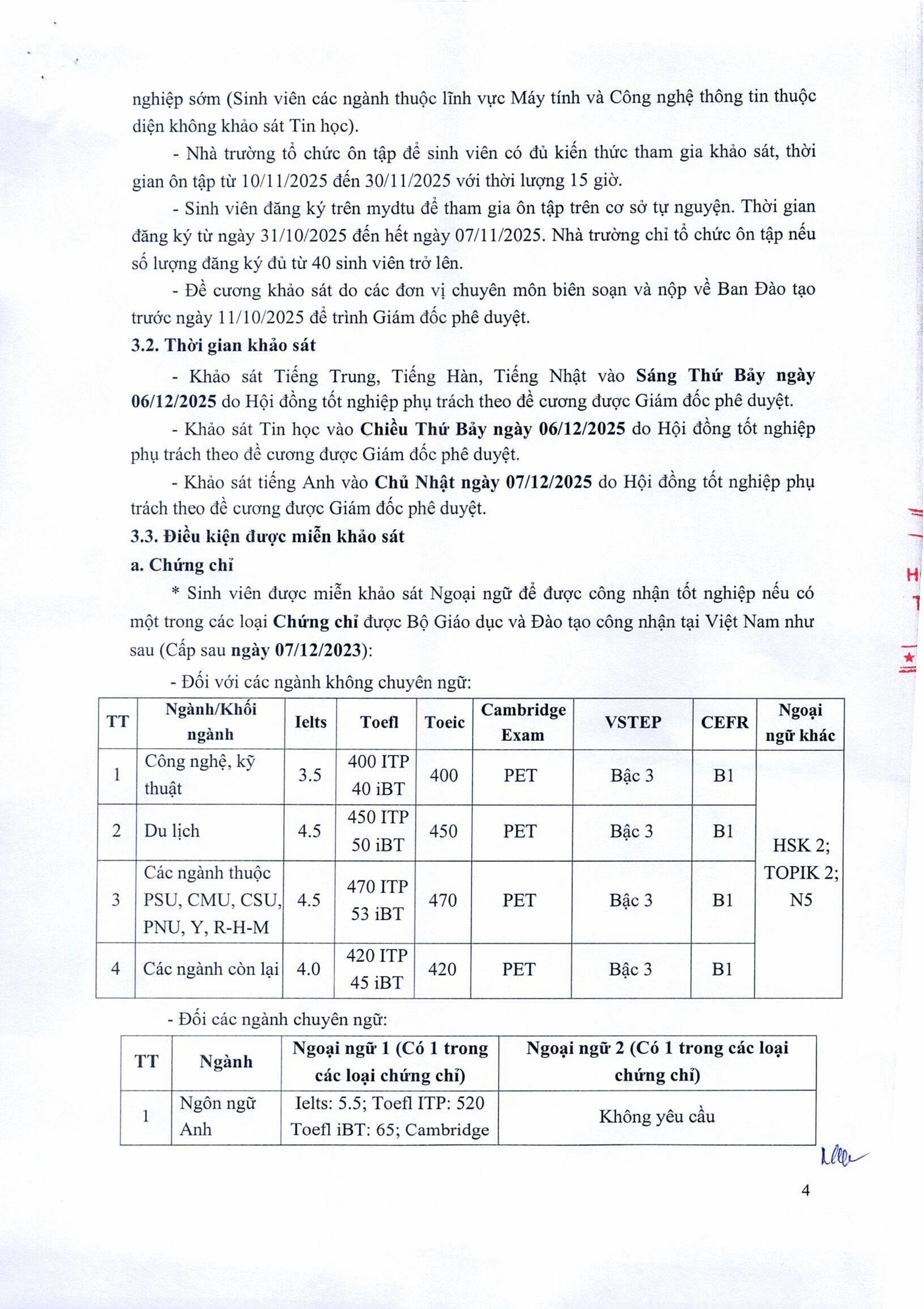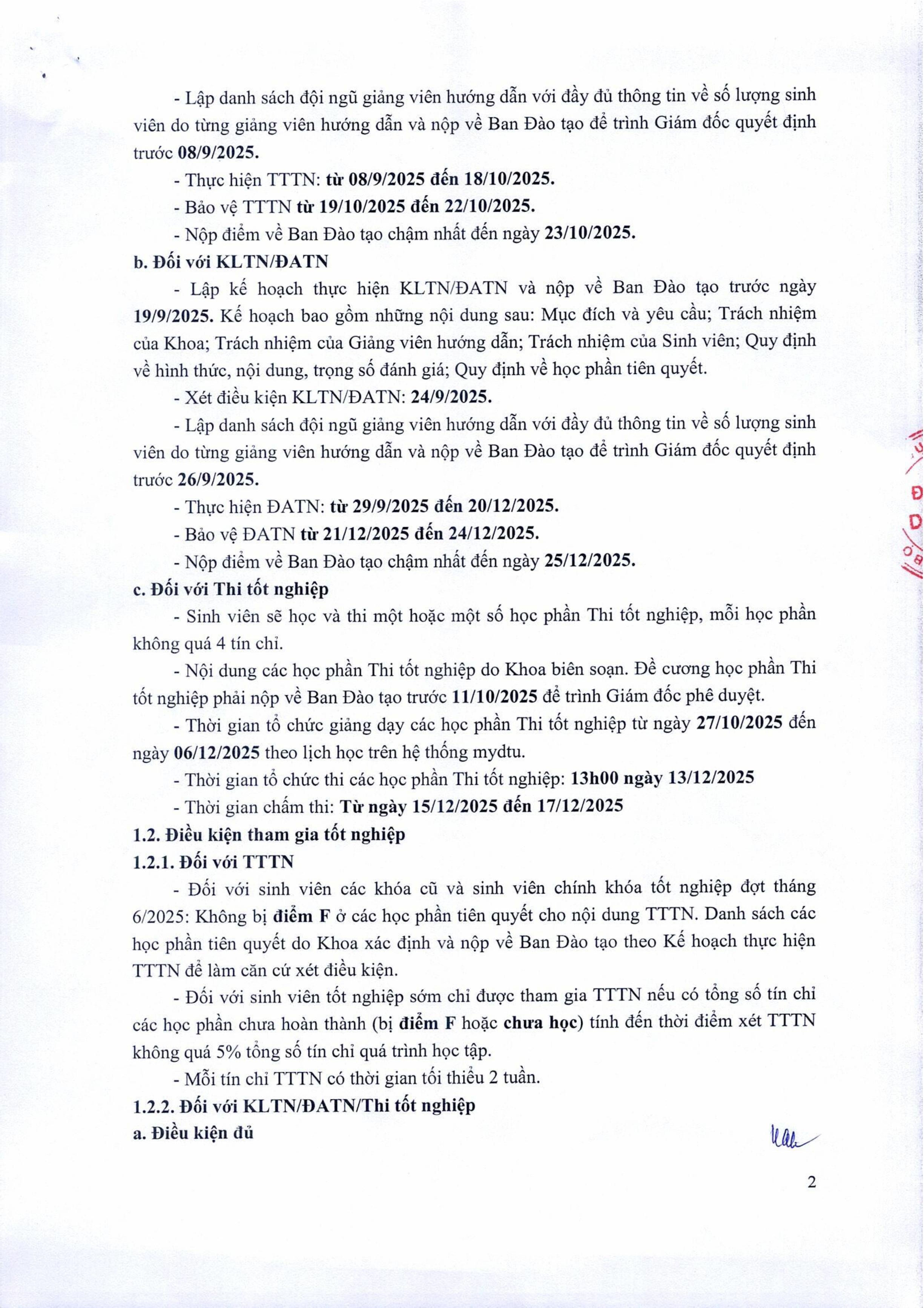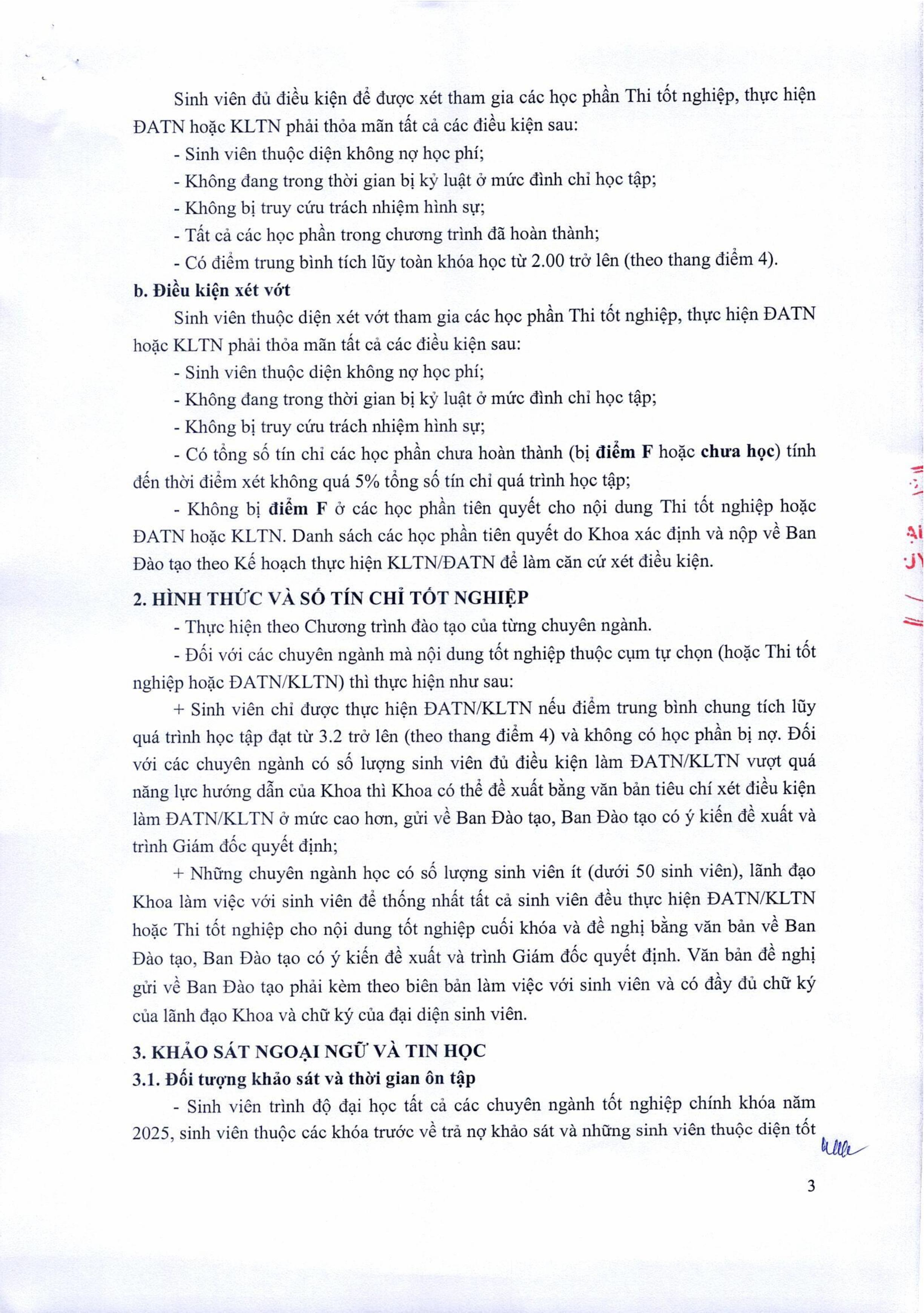 Kế hoạch tốt nghiệp trình độ đại học tháng 12 năm 2025